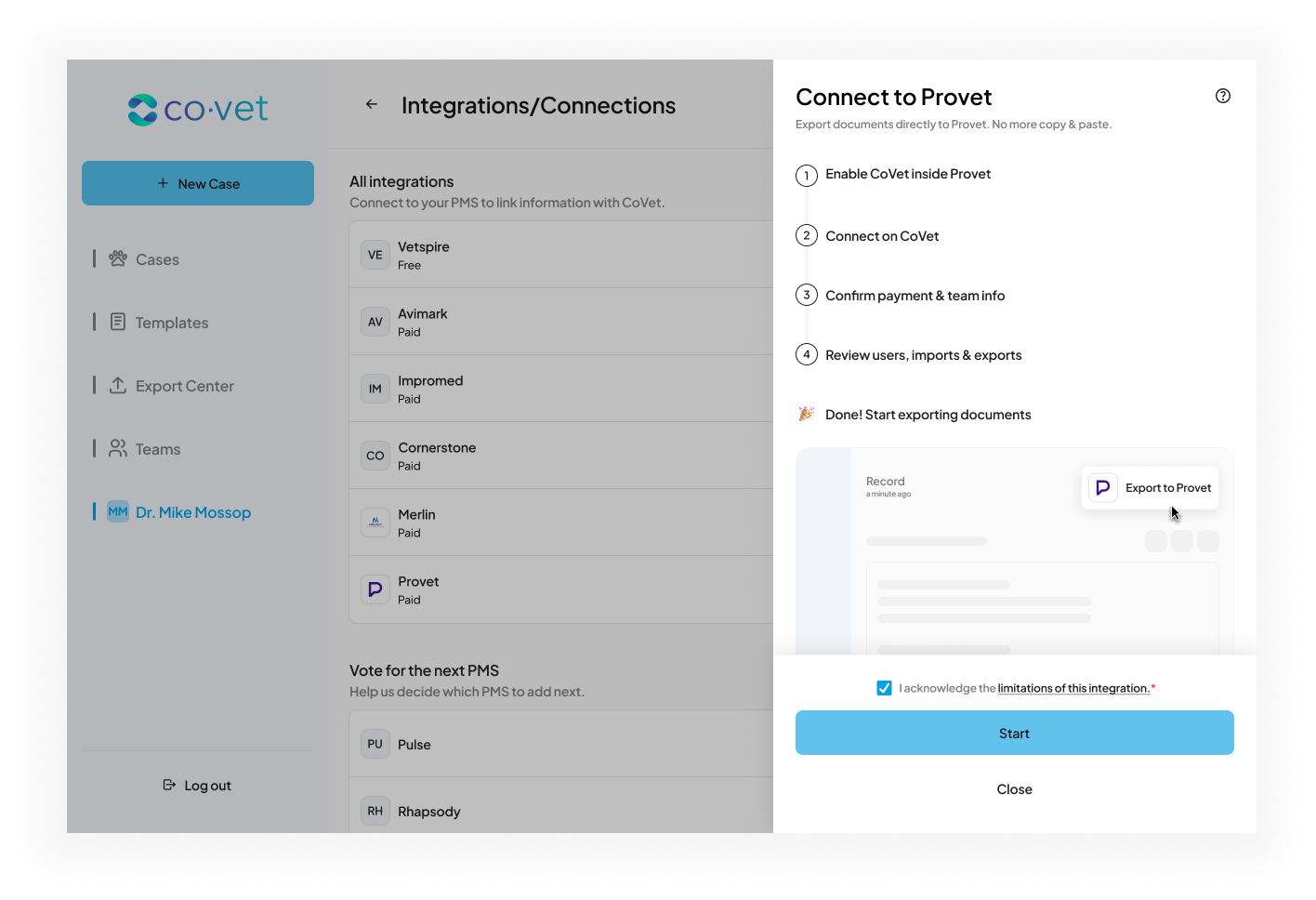 If your clinic uses any of these platforms, you can now connect them directly through CoVet for a more streamlined documentation experience.