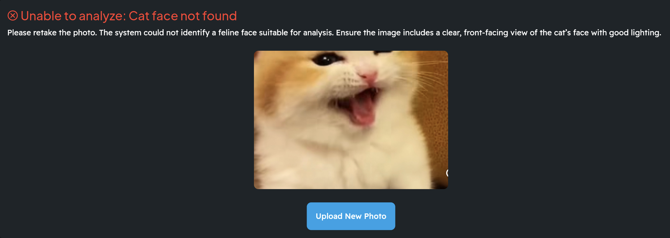 Analyses a cat’s facial features from an uploaded photo.