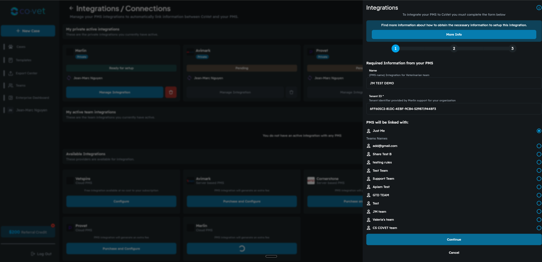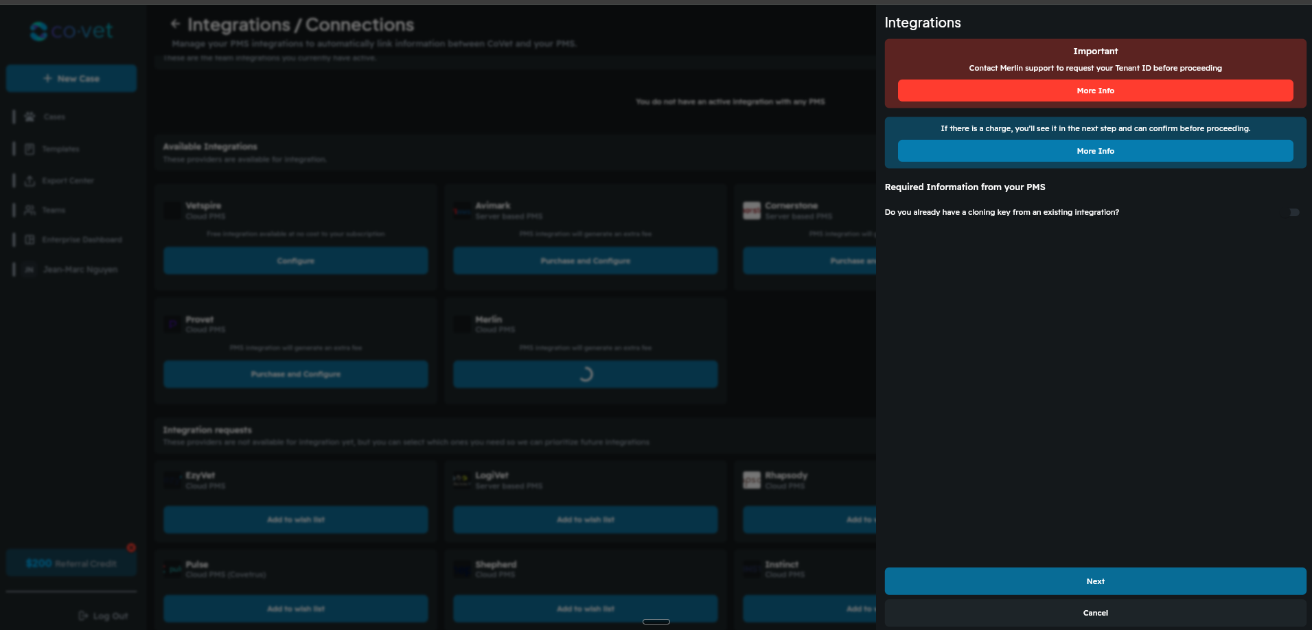 Once this process is finished, CoVet will receive the required information and you will receive a notification when your Merlin integration is activated.