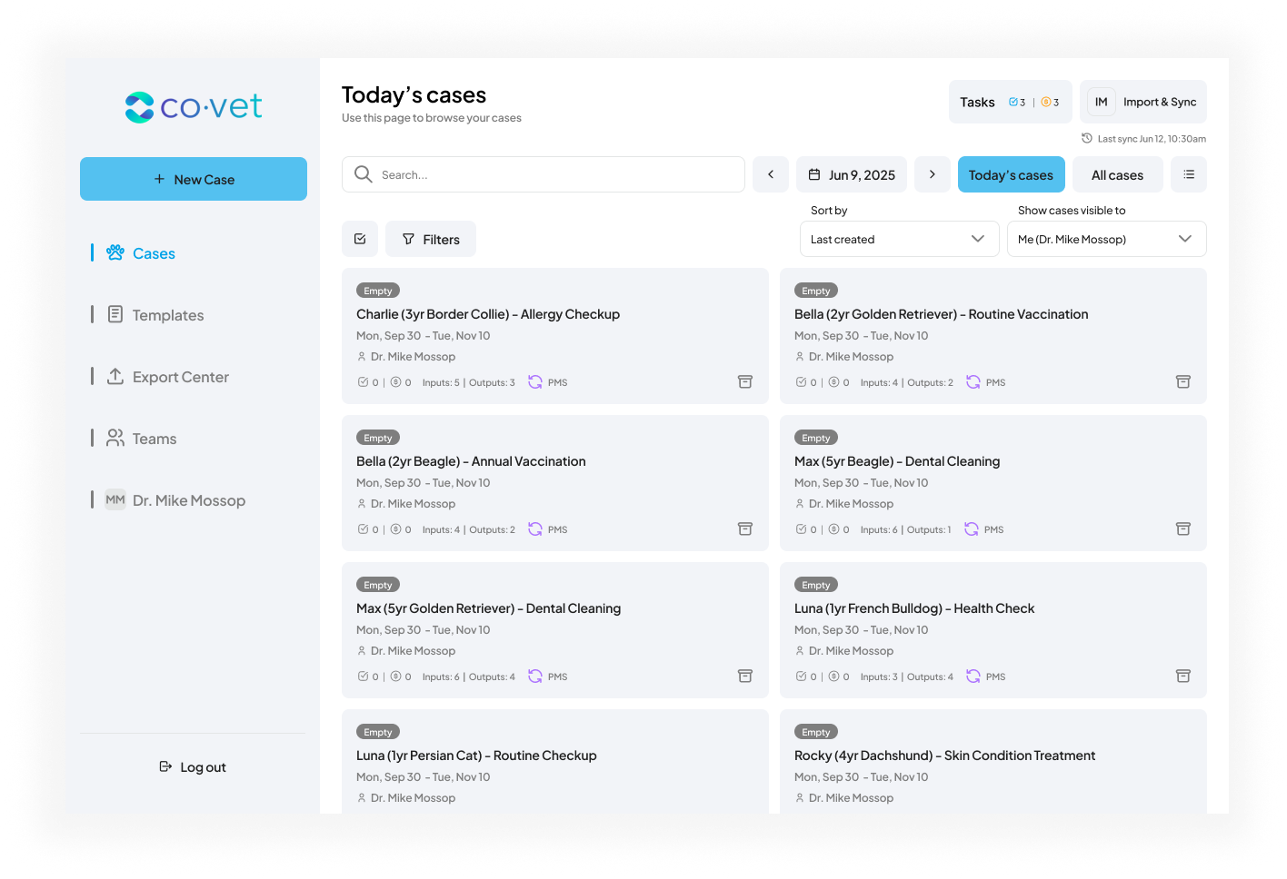 When you manually import cases from your PMS, CoVet will not duplicate the case if it already exists. You do not have to worry if you click on Import & Sync multiple times.