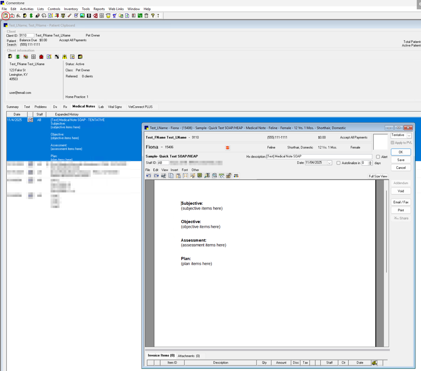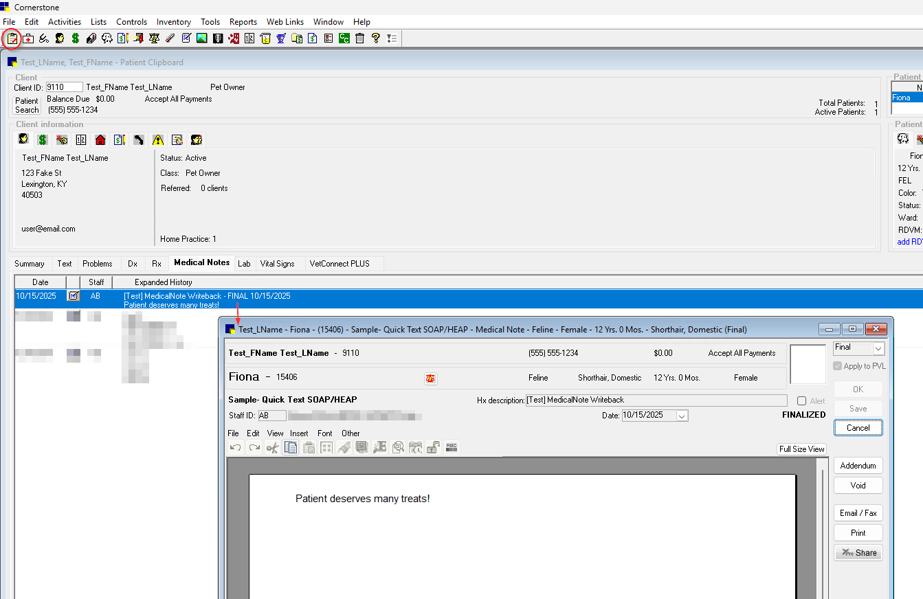 From the Patient Clipboard, select the pet and open the Medical Notes tab. Double-click to open the full note.