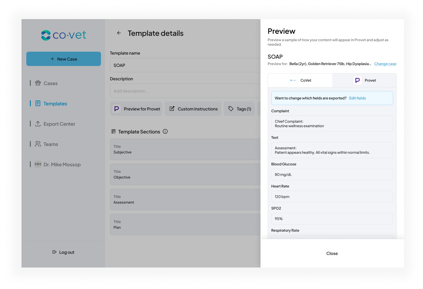 Proper mapping streamlines your workflow and helps ensure that all information is organized accurately on the Provet side. This can be done when you initial setup your Provet Integration, but here are two other ways you can map your CoVet Templates to Provet.
