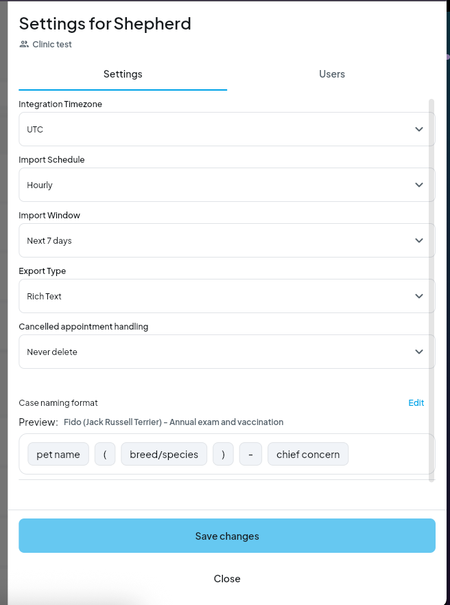 - If a Shepherd appointment includes multiple pets, CoVet imports it as 1 case with multiple pets