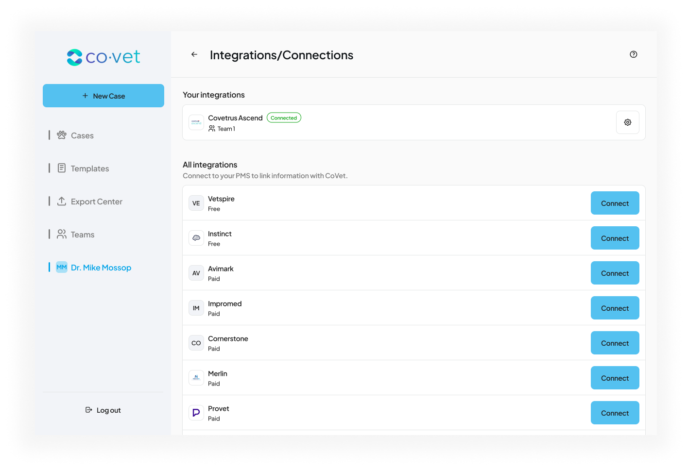 Once the integration is enabled, your team can document visits in CoVet and keep patient records aligned with Covetrus Ascend.