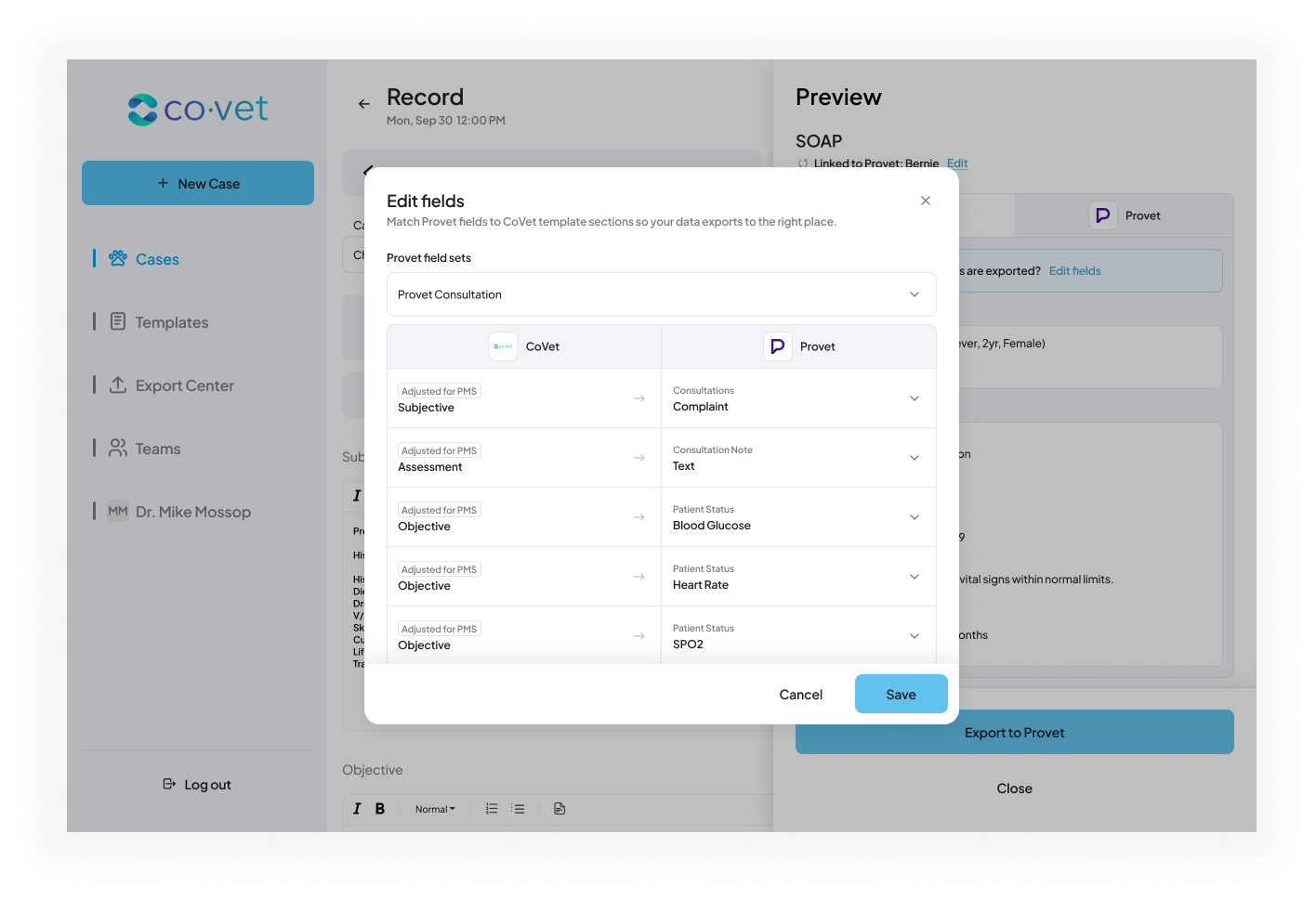 De Provet-integratie stelt u in staat om documenten vanuit CoVet met één klik naar uw PMS te exporteren, zodat u efficiënt verder kunt met uw werkzaamheden.